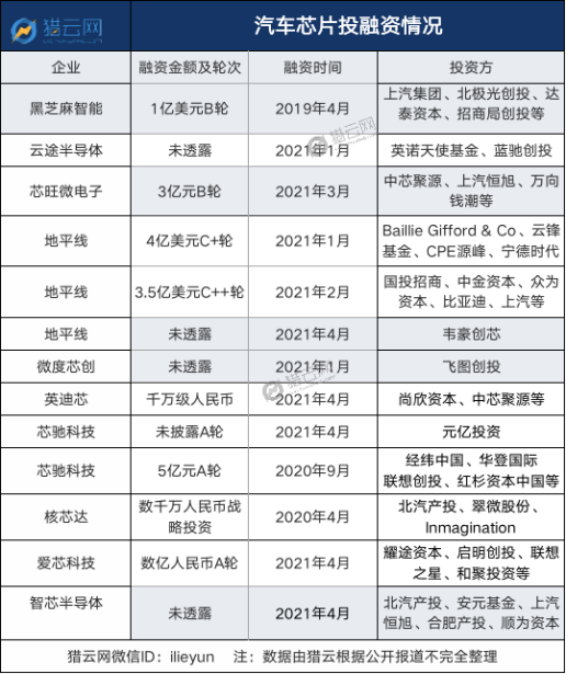 而近两三年才重回“芯片热”的投资圈,更加紧了在汽车芯片领域的投资步伐,不少企业连续获得大额融资。
