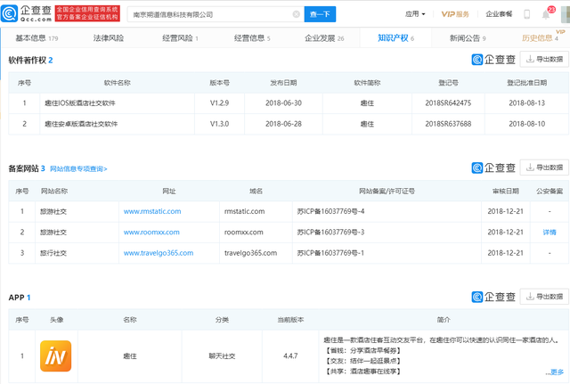 “趣住”App 属于南京朔道信息科技有限公司旗下应用,是一款近场社交 App,基于 LBS 功能,用户可以在平台上发现在酒店内的其他用户,并进行聊天互动,平台具有举报和留言墙等功能。