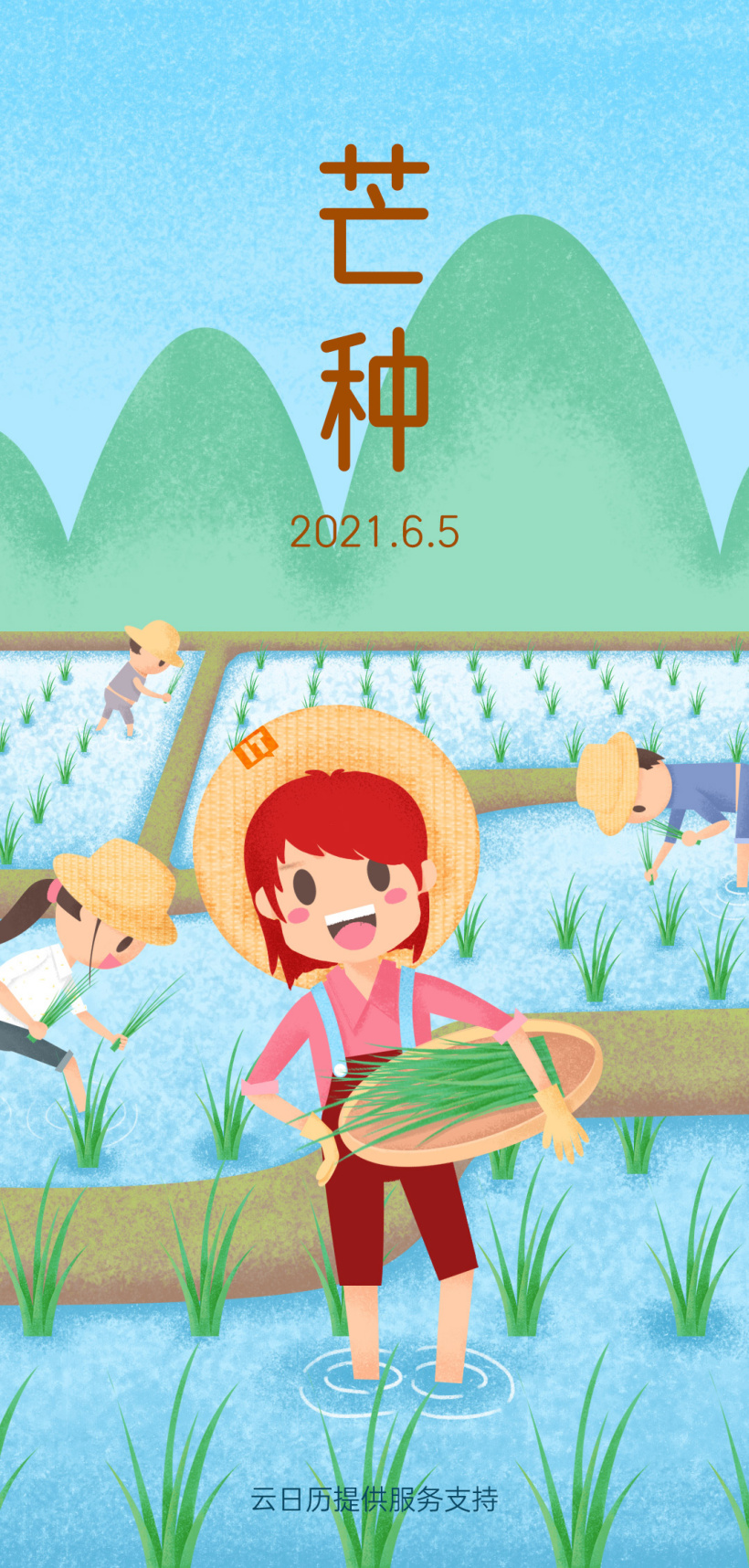 芒种是农忙季节,在山西荣河开始收获大、小麦,当地人称之为“农忙”。有谚语说:“麦黄农忙,秀女出房。”因此在此节气,妇女也要下地帮助度过“农忙”。而在河北盐山则是在“忙中”这天有“嫁树”的习俗。就是用刀子在枣树上划几下,寓意可以多结果实。