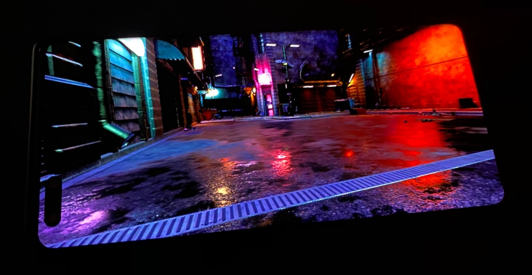 Cocos 引擎官方团队将几周前刚发布的 Creator 3.1 赛博朋克夜景 Demo 也编译运行了一下,可以看到华为海思团队贡献的延迟渲染模块很好地运行在 HarmonyOS 上,地面上的水渍、泥泞对应各色霓虹灯的反光效果,营造了十足的赛博朋克光污染场景环境。