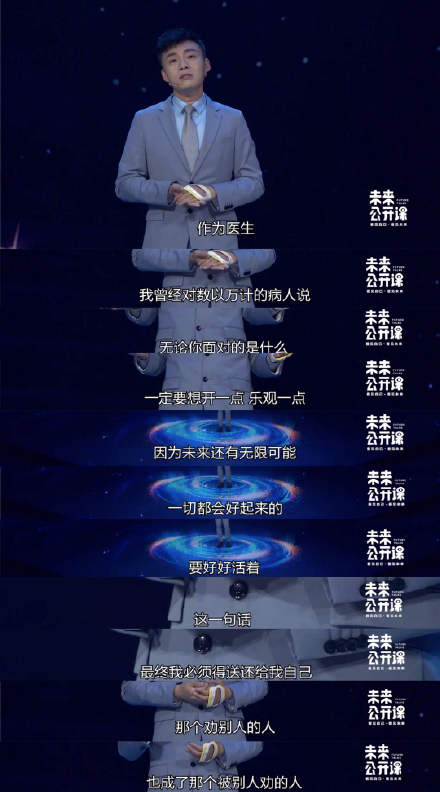 这里的“恢复”是身心恢复,不是被神化的感动,是一个“人”真正走出来的过程。从不解为什么这个人是自己,质疑今后能否回到手术台,到最终走出来,他分享了很多患者的故事,尤其是那个恢复了七天光明为自己缝寿衣的王阿婆更是催泪。