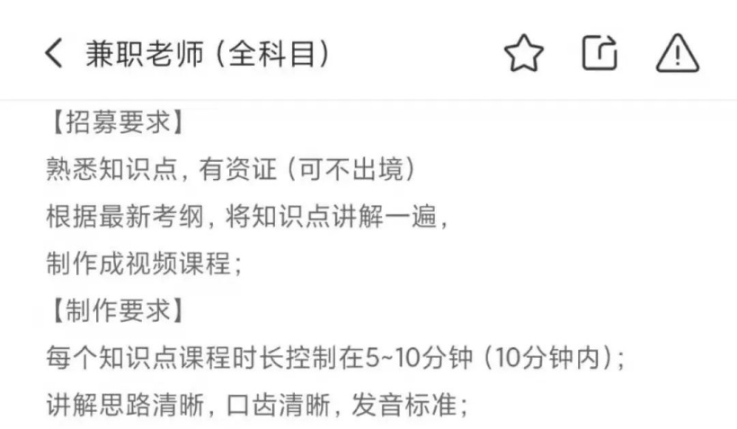 “一般情况下,兼职的在校教师都不会露脸参加直播课堂、课程视频的录制。”她指出,由于兼职的在校教师均拥有教师资格证书,且有在职的教学及教研经验,因此一直是机构在课程、教材开发方面的中坚力量。