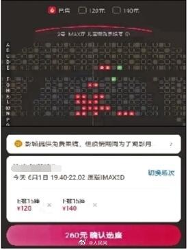 你接受吗?】随着电影市场的逐渐升温,有些#电影院座位分区加价#,某影院IMAX厅黄金区域的位置要比普通位置贵了20元。其实,早在2019年底,北京的一些影院就已经开始实行分区售票。只是由于票差不大,相差多为1元或者2元,观众没有太计较。同一场电影因“位置”不同而票价分区,你接受吗?(北青报)