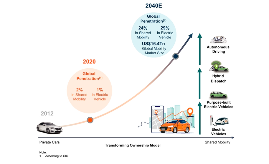 根据滴滴在招股书中的测算,2020 年全球出行市场规模为 6.7 万亿美元(约合人民币 42.8 万亿元),但共享出行和电动汽车在全球的渗透率分别为 2% 和 1%。滴滴出行总裁柳青也曾经公开表示,对比电子商务在中国 26% 的渗透率,中国的出行市场还有很大的潜力可以挖掘。