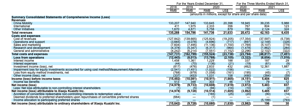 和人们想象中不同的是,滴滴并不是一家非常赚钱的公司,甚至未来一段时间内,因为对单车、自动驾驶等各项新业务的投入,都可能会持续亏损。从招股书中可以看到,公司在 2018 年、2019 年和 2020 年的净亏损分别为 150 亿元人民币、97 亿元人民币和 106 亿元人民币。