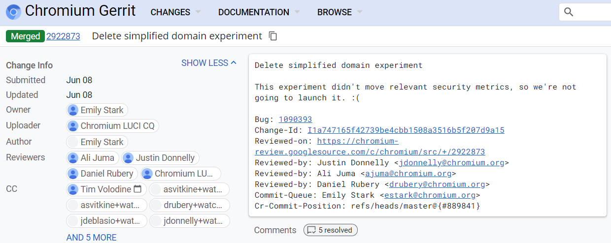 近日,谷歌在 Chromium 合并的一个 commit 显示,开发团队已删除隐藏 URL 的功能代码。理由是此项实验性功能对相关安全指标没有推动效果,所以不打算正式上线。