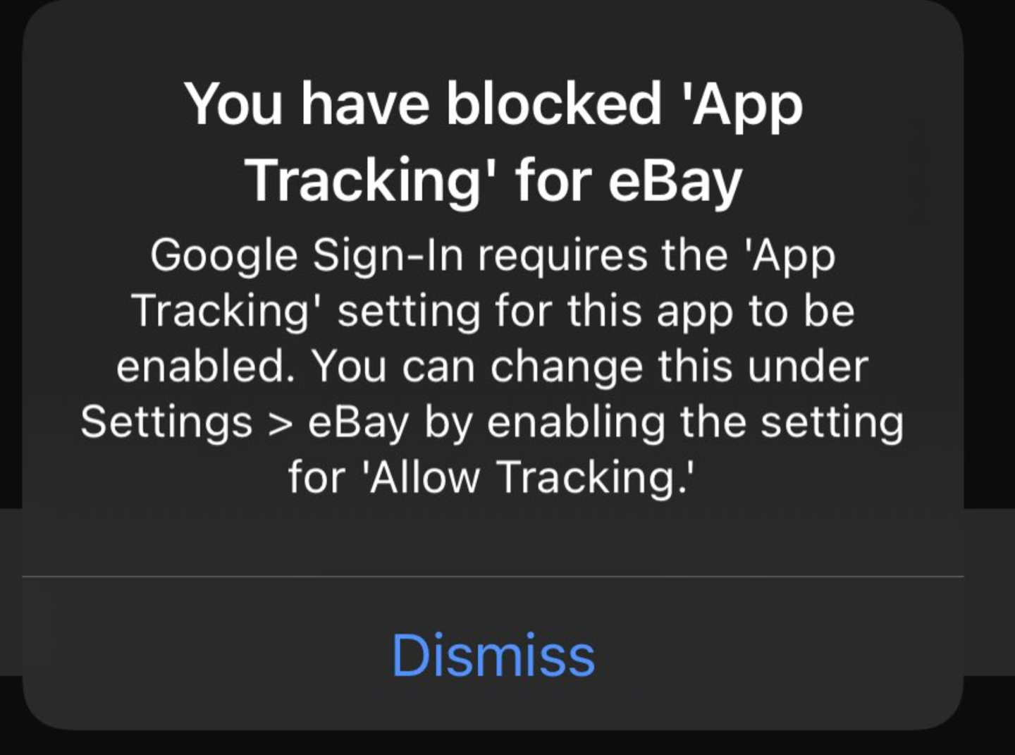 据国外网友的反馈,eBay、微软 Outlook 等 App 拒绝没有允许跟踪的用户使用第三方登录。从图中可以看到,eBay 拒绝用户使用谷歌账号登陆,除非手动开启允许跟踪。