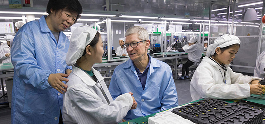 ▲2017 年 12 月苹果 CEO 库克拜访立讯精密昆山工厂,董事长王来春陪同