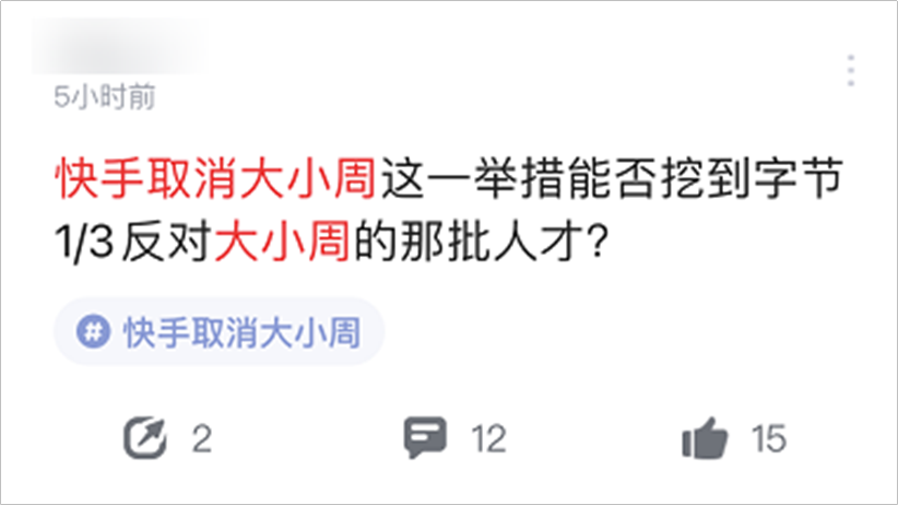 快手取消大小周,说不定能把字节反对大小周的三分之一人挖去快手……
