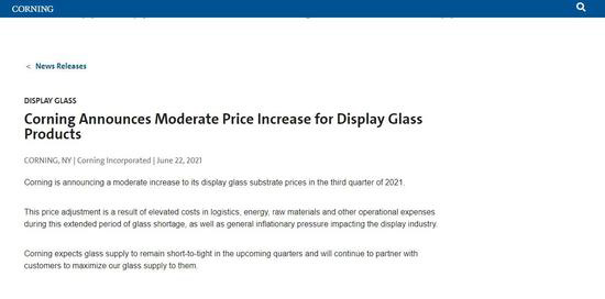 据中国电子报,康宁显示集团总裁张铮表示:“康宁一直在利用制程优化尽量克服成本,现在已经没有办法完全抵消成本的增加。”