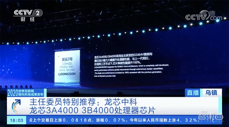 ▲龙芯 3A4000/3B4000 芯片获 2020 年世界互联网领先科技成果专家推荐委员会中外主任特别推荐成果