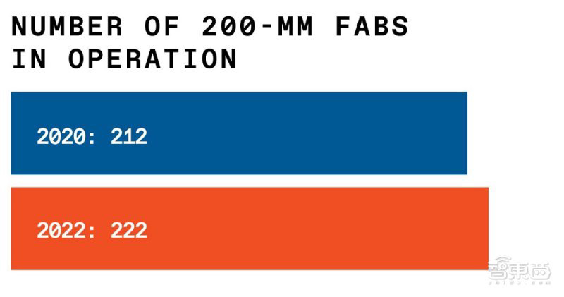 由于晶圆厂成本巨大,半导体制造厂商往往优先建造更先进的 300mm 晶圆厂。美国半导体行业协会 SEMI 数据显示,2022 年 200mm 晶圆厂数量将增加 10 座左右,只有 300mm 晶圆厂新增数量的一半。