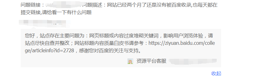 半年没有收录,这是SEO外包公司能干出来的事,可以想象SEO优化这个门槛是真的够低了,一个月不收录你就得想办法了吧,都半年了不收录,还是快退款吧,那对于他不收录我接手以后就跟百度反馈,然后得到的结果是