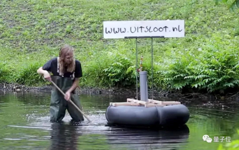 他自制了一个可以漂浮在水面上的收集装置。