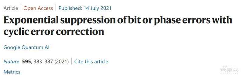 该研究论文题目为《通过循环纠错对位或相位错误进行指数抑制(Exponential suppression of bit or phase errors with cyclic error correction)》,该研究成果已于 2021 年 7 月 14 日在 Nature 杂志上发表。