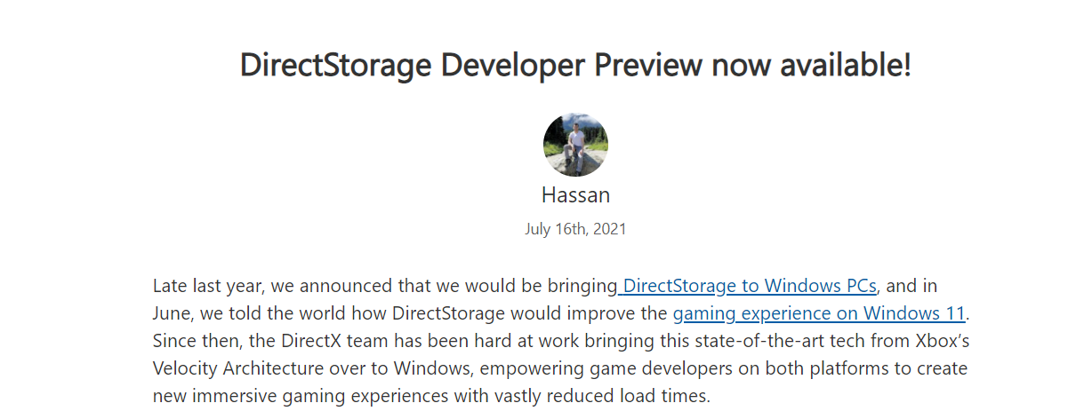 近日,微软 DirectX 博客官方人员宣布,适用于 Win11 的 DirectStorage SDK 已经推出,同时官方确认,DirectStorage API 将适用于 Win10 1909 版本及以上。