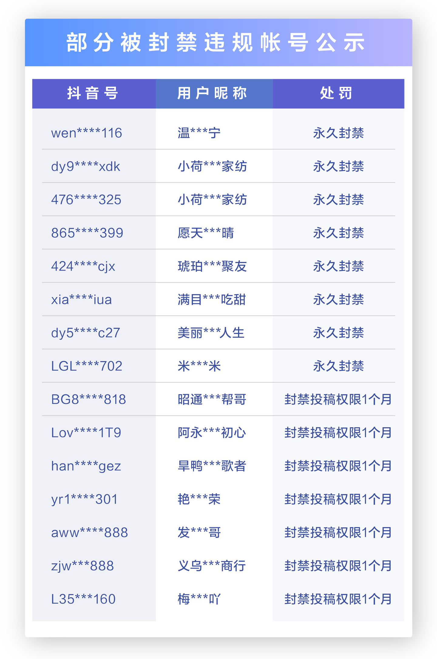 IT之家了解到,公告显示,针对近期出现的涉嫌消费灾情违规行为,抖音安全中心下架违规视频 98 条,处罚违规直播间 138 个,封禁违规帐号 42 个,其中永久封禁帐号 8 个。