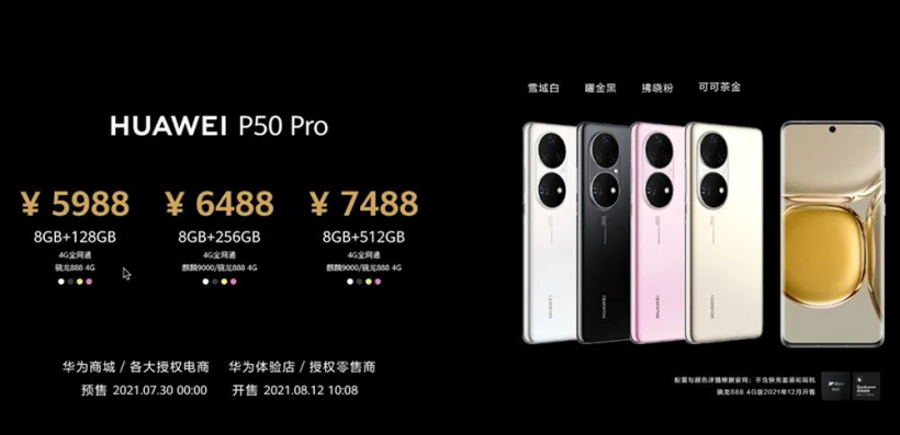 根据官网信息来看,此次华为 P50 Pro 依然搭载了华为自家的顶级 SoC 麒麟 9000,而华为 P50 标准版则搭载了高通骁龙 888。