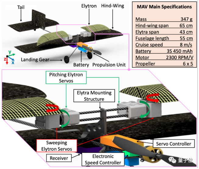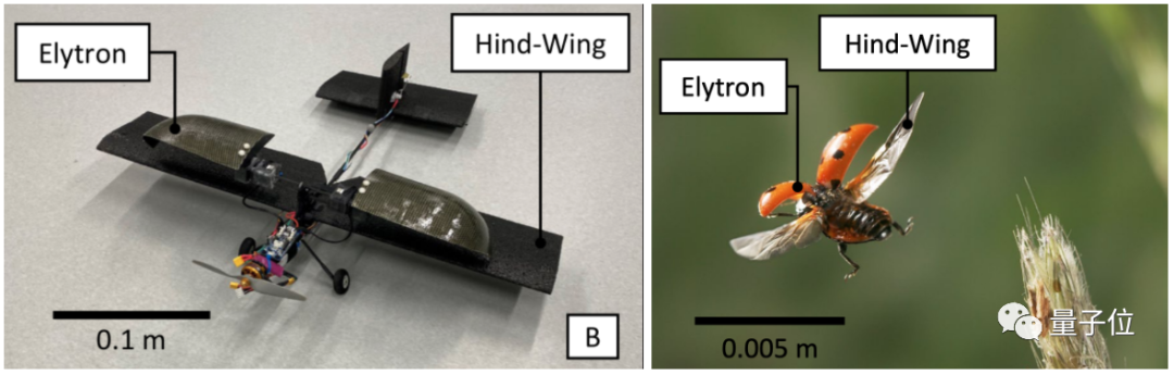 这架无人机,确实也参考了甲虫,用上了两对翅膀:鞘翅(elytron)和后翅(hind-wing)。