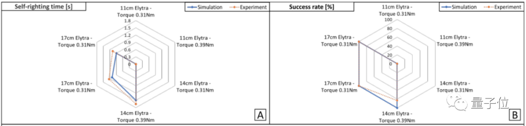 经过实验发现,鞘翅越长,无人机“翻身”的成功率更高、所需时间更短。因此团队最后选择了 17cm 的鞘翅。