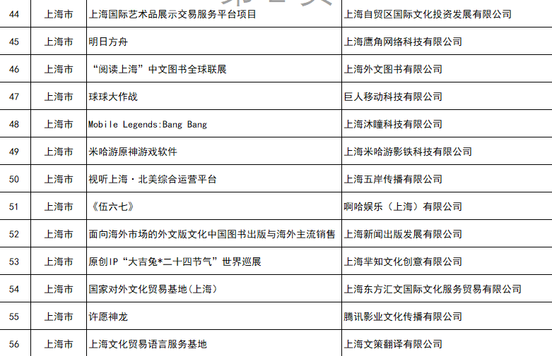 ▲ 《2021-2022 年度国家文化出口重点企业公示名单》部分截图