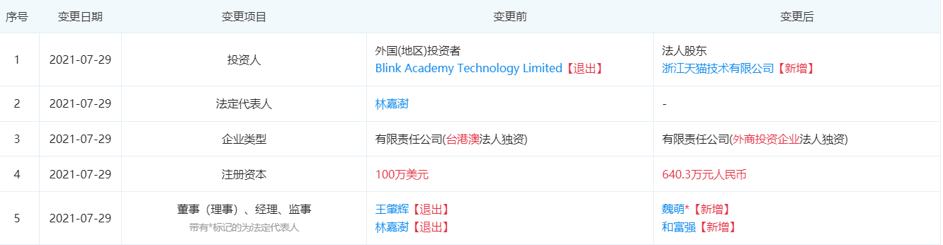 企查查 App 显示,近日,NOMO 相机关联公司北京灵光再现信息技术有限公司发生工商变更,原股东 Blink Academy Technology Limited 退出,新增浙江天猫技术有限公司为股东。