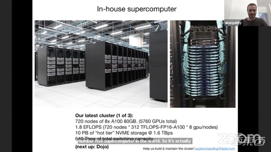 ▲ Andrej 介绍了特斯拉用来训练人工智能系统的超级计算机