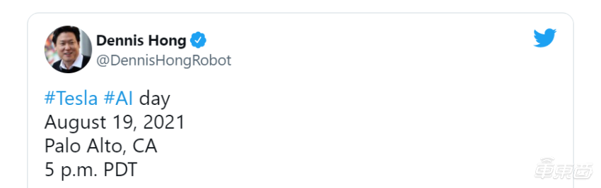 有意思的是,反倒是 Dennis,一个不敢承认也不敢否认自己在帮特斯拉干事的“局外人”,在 8 月 3 日发布推特大大方方地告诉公众,今年特斯拉 AI 日将于当地时间 8 月 19 日下午 5 点于美国加州 Palo Alto 举办。