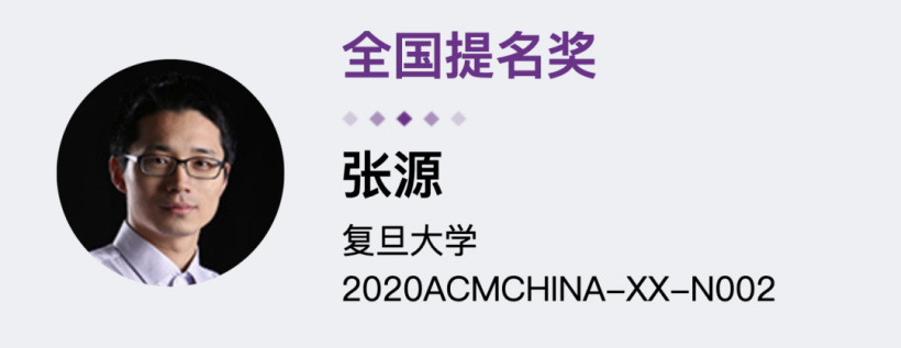 上海交通大学副教授张拳石、清华大学计算机系助理教授王鑫荣获 2020 ACM 中国新星奖,复旦大学副教授张源、中国科学院计算技术研究所副研究员杜子东获得全国提名奖。