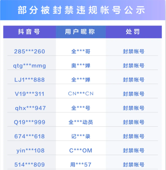 该公告指出,针对借奥运健儿营销、蹭奥运健儿热度的违规行为,抖音安全中心下架违规视频 3287 条,处罚违规直播间 106 个,处罚违规帐号 92 个,其中永久封禁违规帐号 32 个。