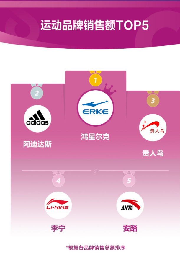 其中,鸿星尔克成为最受追捧的运动品牌,同为国货的贵人鸟、李宁和安踏也跻身前五。