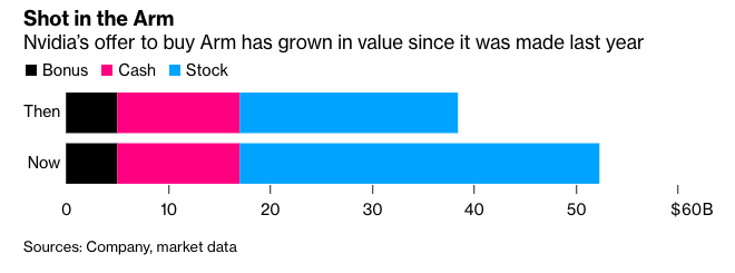 图 2:英伟达股价上涨推动 ARM 出售价超 500 亿美元