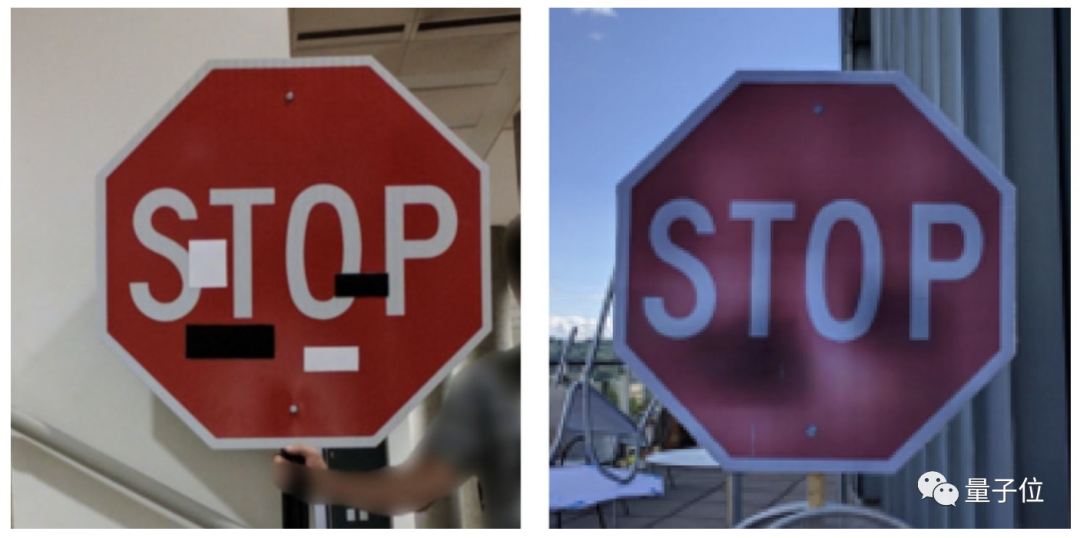 (当然,计算机视觉方面也早就出现过了一些类似原理的对抗攻击。比如下面这两个经过特殊处理的标志就会被自动驾驶系统认成限速标志。)
