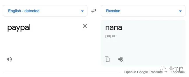 将“paypal”中第一个英文字母 a 换成西里尔字母 a,尽管这俩人眼视觉上看起来是一样的,但 Unicode 码不同,谷歌俄语翻译最终就会将它翻译成“папа”,也就是“爸爸”的意思。