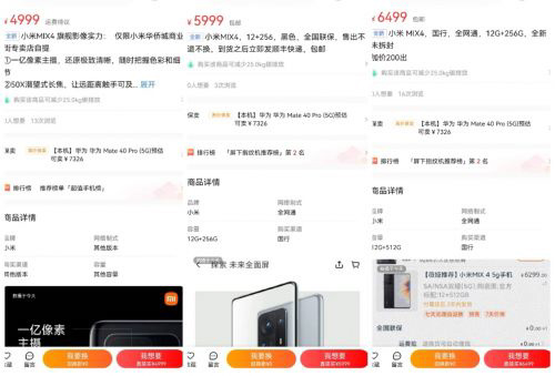 同时,近期平台上小米 MIX 系列的老款机型价格出现浮动,其中 MIX2 和 MIX3 的价格较发布会前有一定下降,平均降幅在 100 元左右,而初代小米 MIX 则维持在持平状态。