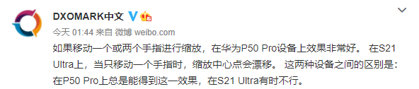 此外,他们还强调:如果移动一个或两个手指进行缩放,在华为 P50 Pro 设备上效果非常好。在 S21 Ultra 上,当只移动一个手指时,缩放中心点会漂移。这两种设备之间的区别是:在 P50 Pro 上总是能得到这一效果,在 S21 Ultra 有时不行。