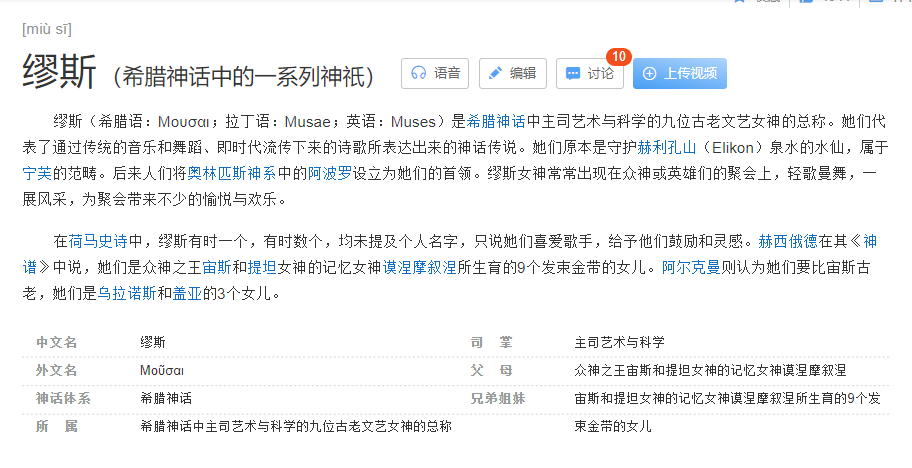 公开资料显示,缪斯是希腊神话中主司艺术与科学的九位古老文艺女神的总称。她们代表了通过传统的音乐和舞蹈、即时代流传下来的诗歌所表达出来的神话传说。