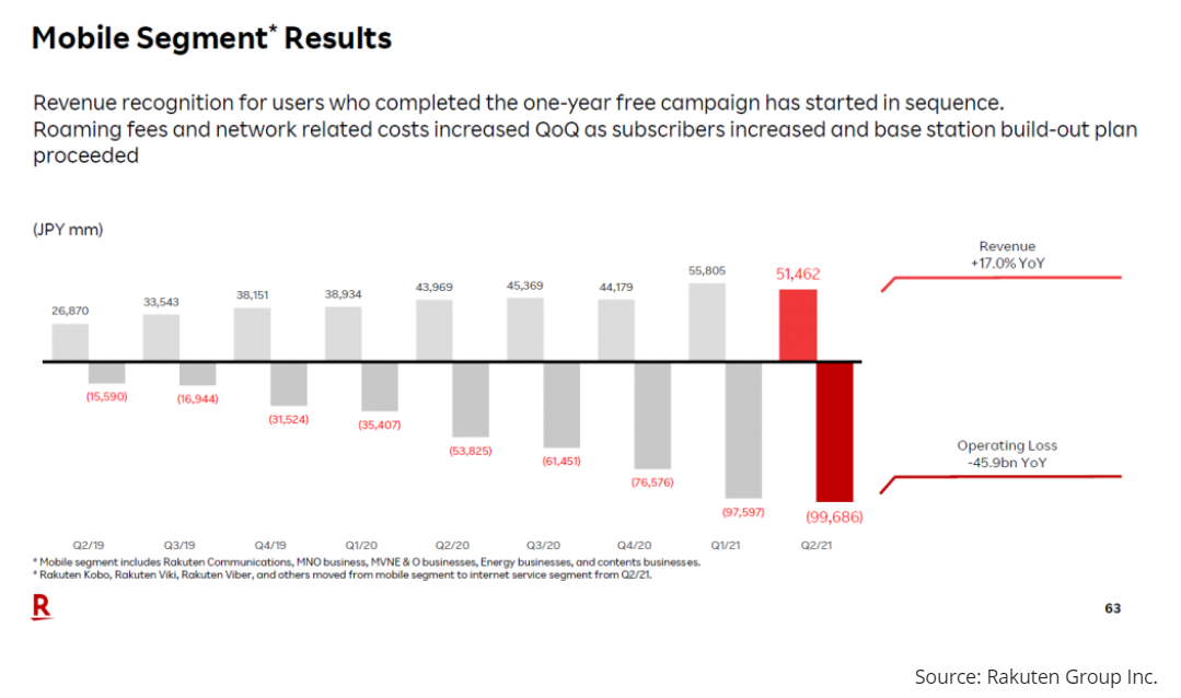 Rakuten Mobile 将亏损扩大归因于网络部署的持续大规模投资和漫游成本的增加,而这些是因为其用户数不断增加。另一方面,由于全球半导体供应短缺,其到今年夏季网络覆盖 96% 人口的目标延期至年底。在财务方面,这意味着 Rakuten Mobile 需要在自己的网络尚未提供服务的地区,为其客户延长漫游支付(至 KDDI)。Rakuten Mobile 预期今年 10 月和明年 3 月将成为大幅降低漫游费用的主要里程碑。