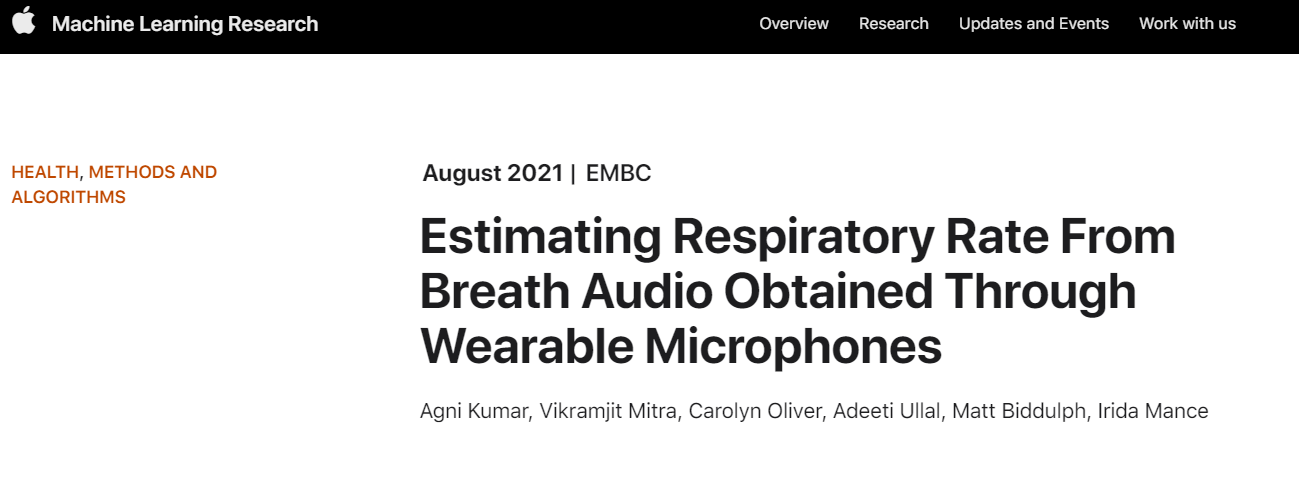 呼吸频率(RR)是用于评估整体健康和身体健康的临床指标。在苹果机器学习研究网站上的一篇论文中,研究人员发现“可穿戴式耳机”能够使用设备的板载麦克风在运动过程中拾取可听见的吸气和呼气。