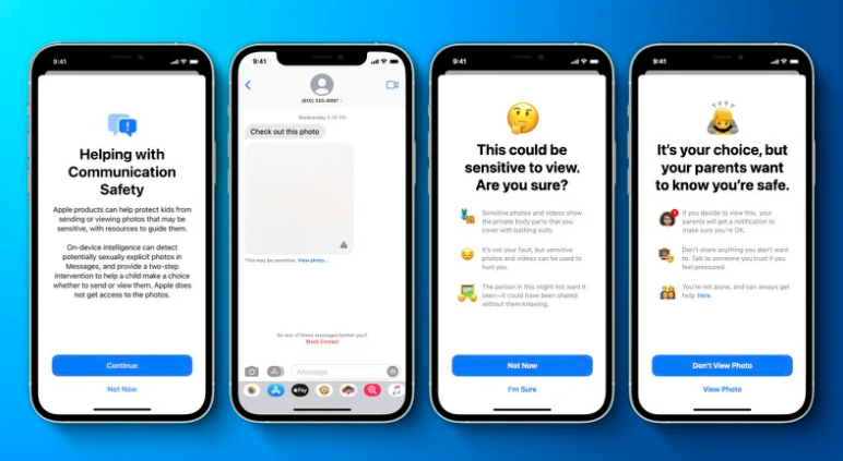 他解释称,“通讯安全”功能指,如果孩子们通过 iMessage 发送或接收露骨的照片,他们会在查看照片前收到警告,照片会变得模糊,并且会有一个选项让他们的父母收到提醒。