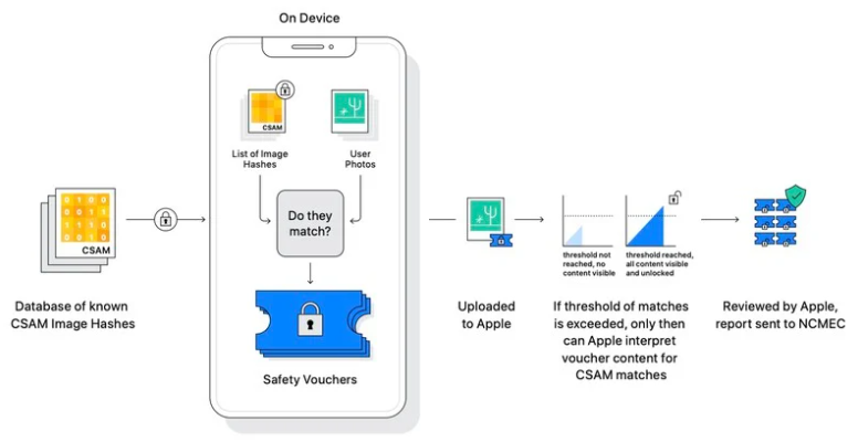 Federighi 还透露了一些关于系统保护措施的新细节,例如在苹果收到警报之前,手机会在照片库中匹配大约 30 个 CSAM 内容,然后它会确认这些图像是否是真实的 CSAM 照片。