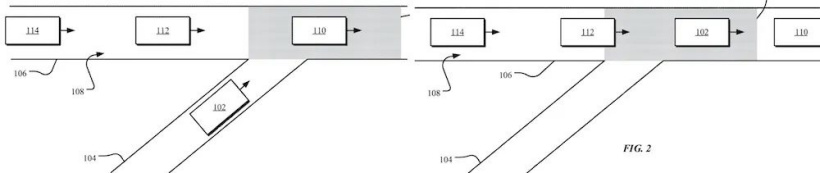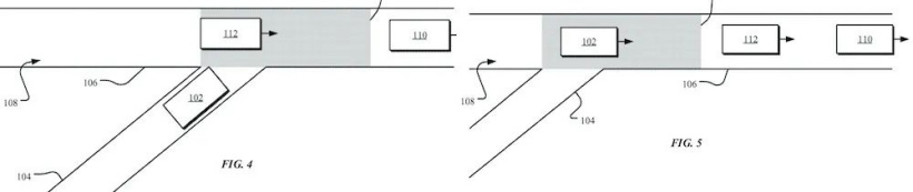 苹果还获得了一项名为《匝道区域躲避车辆的系统和方法》专利,简单来说就是车辆如何从匝道汇入主路。在高速公路上时,常有从匝道汇入主路的情况。车辆在汇入主路之前,先判断是否有侧方来车,并计算速度与时间,如果可能出现相撞的情况,车辆会主动让行或停车,保证安全通行。