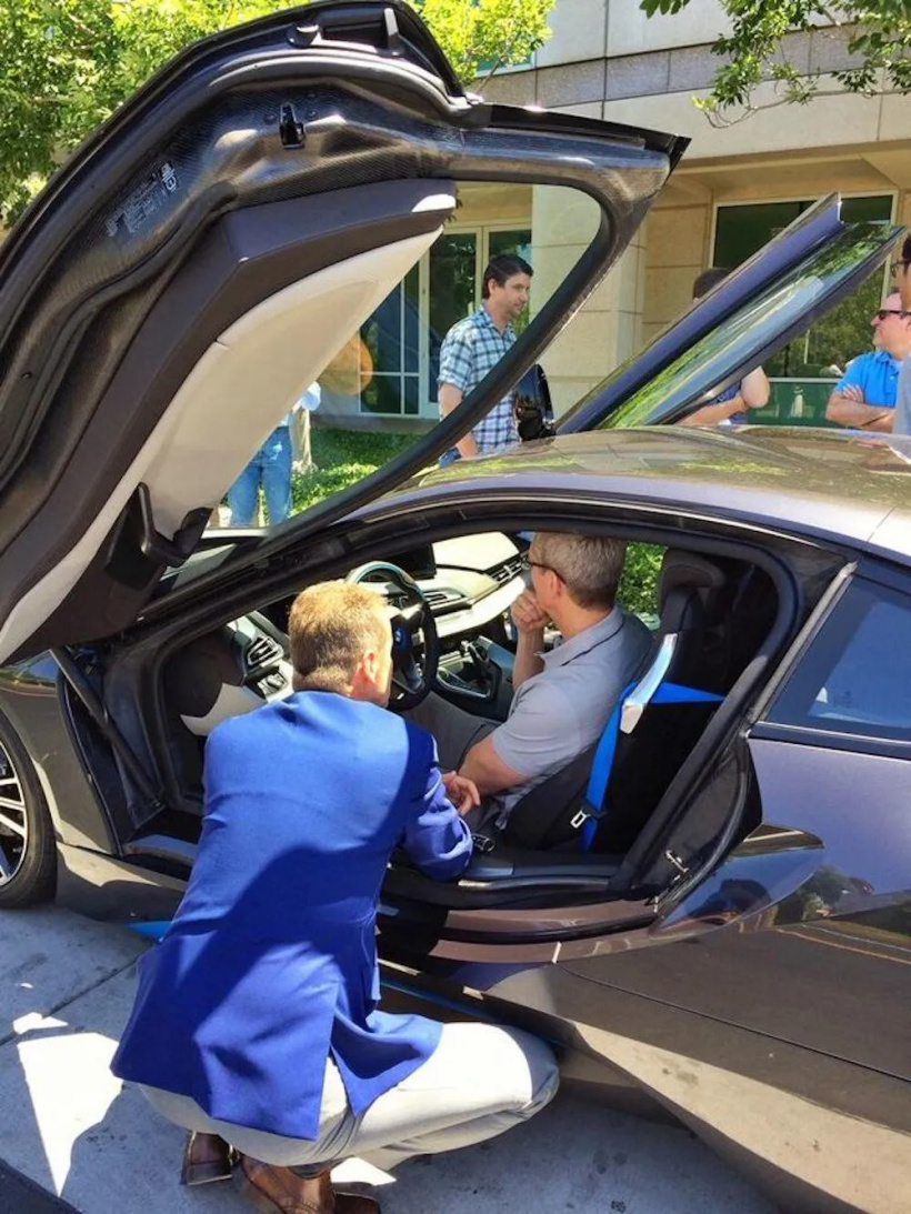 ▲ 苹果 CEO Tim Cook 试乘宝马 i8
