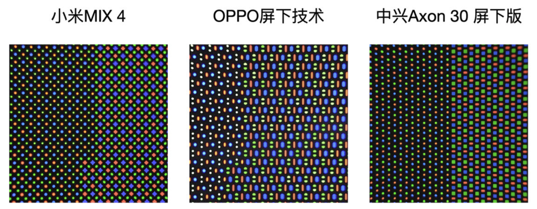 非常“巧合”的是,中兴、小米和 OPPO 都宣称自家方案的屏下区域像素密度达到了 400PPI,可以达到跟非屏下区域几乎相同的显示效果。
