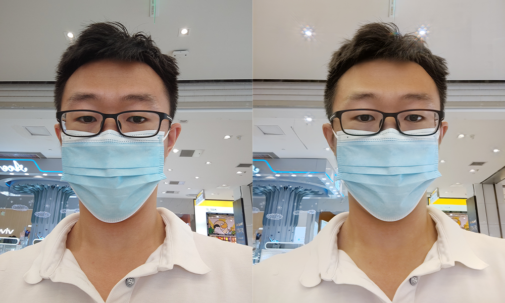 很典型的,屏下前置自拍目前还无法处理一些背景中的“高光”物体,比如电灯或者亮度较高的光源,会有明显的光斑,也就是光线衍射造成的影响。
