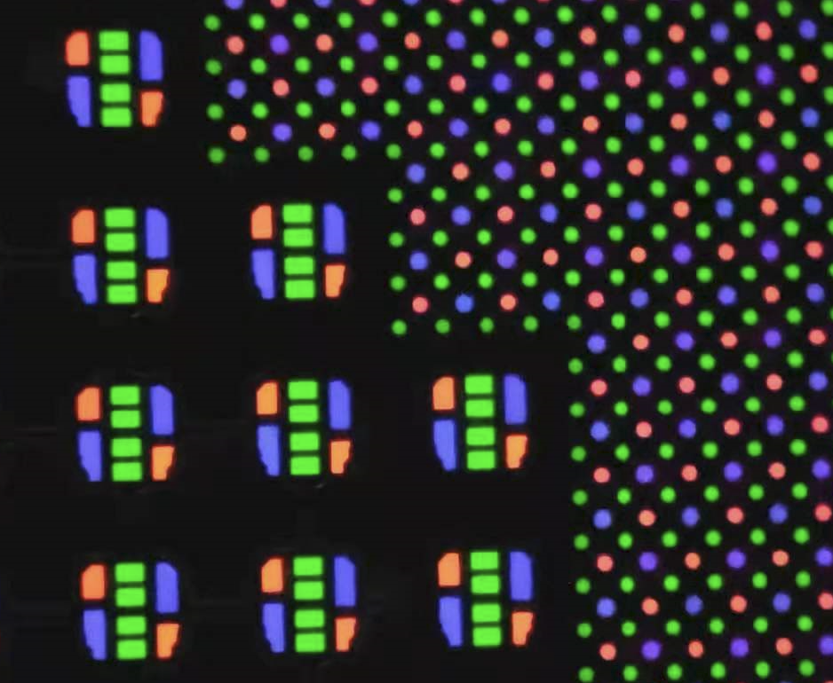 屏下区域的红、蓝、绿子像素通过特殊的排列组合方式被“打包”成一颗“巨型像素”,而每个巨型像素之间的间隔非常大,从而提升屏幕透光率。