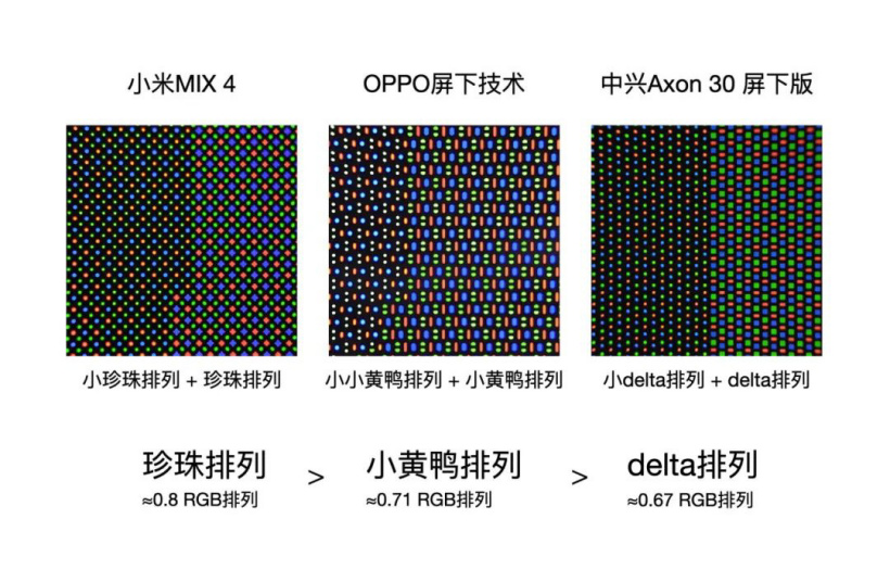 除了像素排布和独立驱动芯片,中兴、小米和 OPPO 也都对屏下区域的电路排布进行了优化。