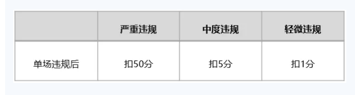 平台将从指定时间(2021 年 8 月 1 日)开始,根据主播历史场次的处置情况,对主播的安全信用分进行扣除(初始分为 100 分),影响分值的因素包括但不限于:违规的直播场数、违规类型、违规级别等。平台将各类违规情节共分为严重、中度、轻微 3 个违规级别。