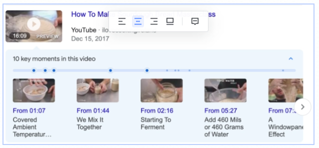 产品管理总监帕布罗?帕尼亚瓜(Pablo Paniagua)在博客中写道:“假设你正在寻找一份好的面包食谱,想要学习一下揉面技术,有了这些新的搜索结果,你就可以看到视频里的所有步骤,从喂发酵剂到把面包从烤箱里拿出来,然后直接跳到揉面那一章。”