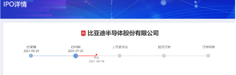 深圳证券交易所在 2021 年 6 月受理比亚迪半导体的 IPO 申请,并在 7 月 25 日进行了问询。